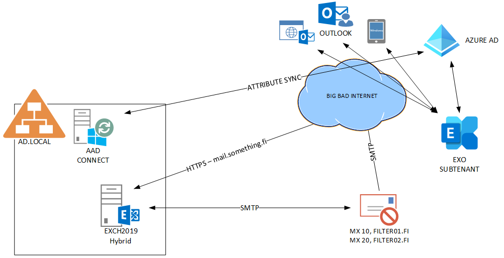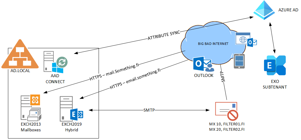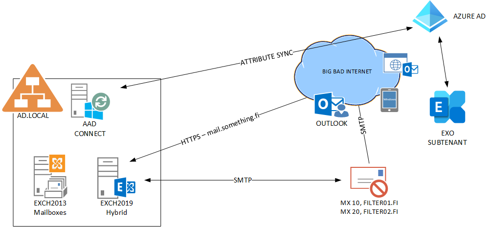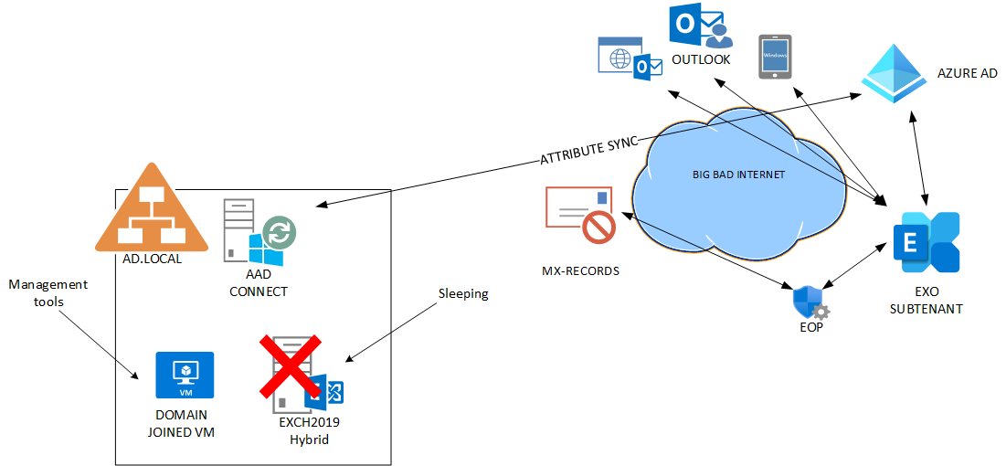 So you need the Management Hybrid Exchange server for handling the Attributes for users and Cloud mailboxes.
