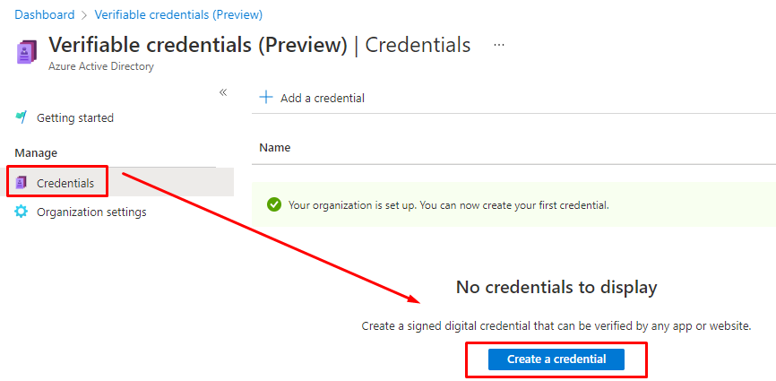 - Set up a tenant for Azure AD Verifiable Credentials.