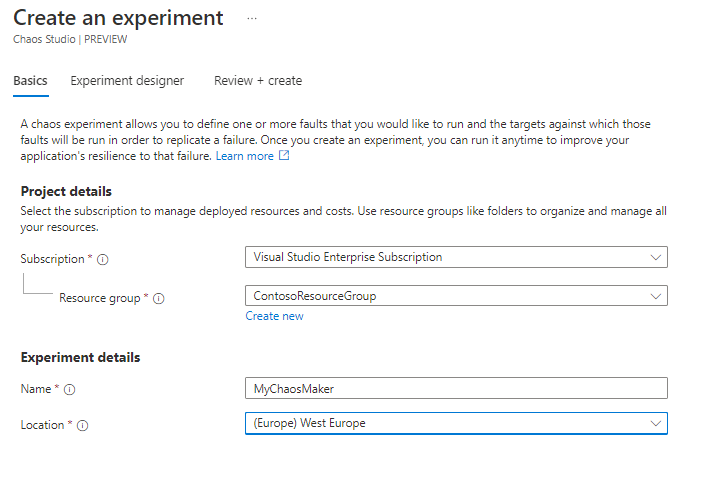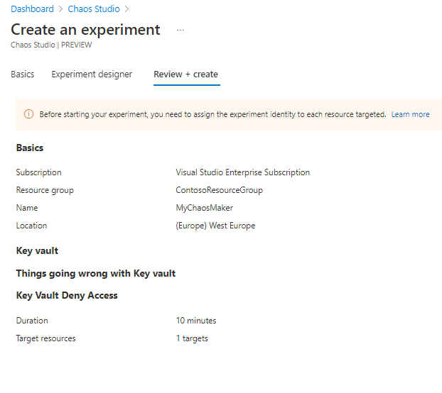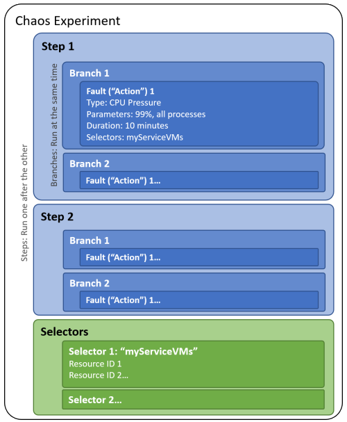 Create an experiment inside Chaos Studio. A chaos experiment is an Azure resource that describes the faults to be run and the resources against which those faults should be run.