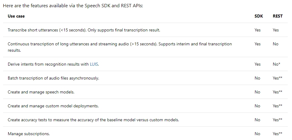 Ok, I get that this is new stuff to them also, there was Bing Speech before, but still this is new and exciting. Btw, Google also released new functions for their Speech Services. And yes I also tried Google invented GoLang for this, but that is a different story to be told, maybe. And when You make the request, You have to use the same region conversion service that our Resource Group is in. So all the stuff in Azure have to be in same resource group or You will get funny (wasnt funny then) errors with Your queries. Mine was northeurope.stt.speech.microsoft.com/speech/recognition/conversation/cognitiveservices/v1 Here the list for the services https://docs.microsoft.com/en-us/azure/cognitive-services/speech-service/rest-speech-to-text Eteenpäin sano mummo lumessa (Just had to use this one, Its Finnish and translated to ... but hey wait, You can use Azure after this blog, not telling) For codeless apps You can use Azure Logic Apps or Google App Engine for these. Here a nice write-up from Abhishek about Azure Logic Apps and batch transcript from Blob. First You want to download Azure Speech SDK for other languages or JavaScript in a browser package There was a new version 1.16 release in the beginning of march and now it supports mp3-format like Google does. I tried this one with WSL and node.js libraries. https://github.com/MicrosoftDocs/azure-docs/blob/master/articles/cognitive-services/Speech-Service/includes/how-to/speech-to-text-basics/speech-to-text-basics-javascript.md You can also use Visual studio to build a solution to test this one, but I prefer the node.js based solution. https://github.com/Azure-Samples/Cognitive-Speech-STT-Windows And here is a sample repository for all different languages https://github.com/Azure-Samples/cognitive-services-speech-sdk Happy speeching all, this article will be continued in part2.