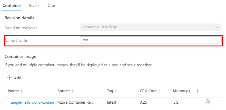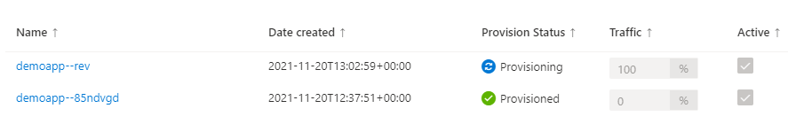 Each revision is a variation of your container app that can have different settings for traffic allocations, autoscaling or Dapr. Create a new revision to make changes to your app.