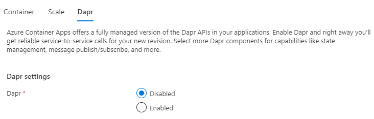 Then you enable or disable Dapr which is Distributed Application Runtime. This runtime helps build resilient, stateless, and stateful microservices.