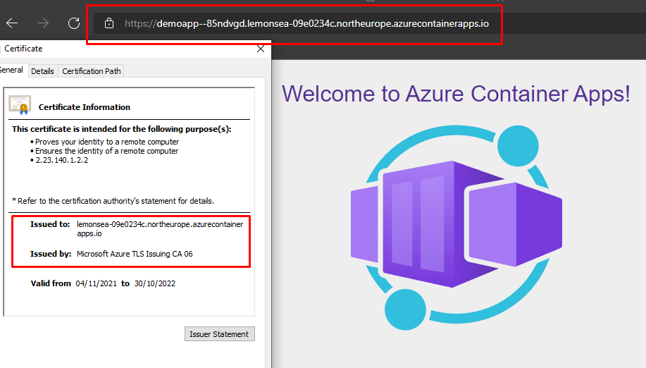 And success! I even have a certificate for my container and it was provisioned only with changing the ingress (incoming port)
