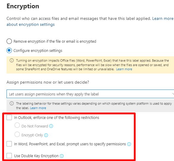 Double Key Encryption (DKE) is a way to encrypt content with our on-premises RMS infrastructure if you want, with this options Microsoft doesn't have access to dke keys so you have to take care of the keys and the infra, if you loose those keys, you loose the files.
