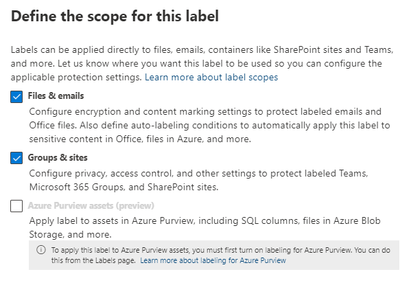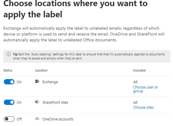 So if you want to apply a label to SPO and O4B content, you have to create own label for that content as you cannot apply the same label to emails and libraries.