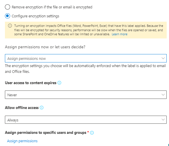 You can apply the label automatically to all content, put expiration date to user, allow offline access for certain amount of days and allow certain users or groups to interact with protected content
