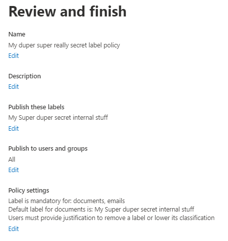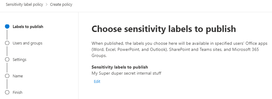 And were done. Now we have our super duper secret label available for users. But it can take 24hrs for the users to see the policy. Always there is a time for the changes, just like it was in the retention policies.