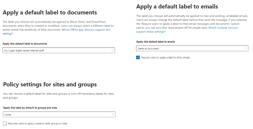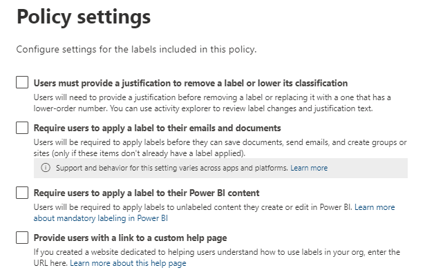 Next you have couple of options, either let users apply label to the content or apply the content forcibly.