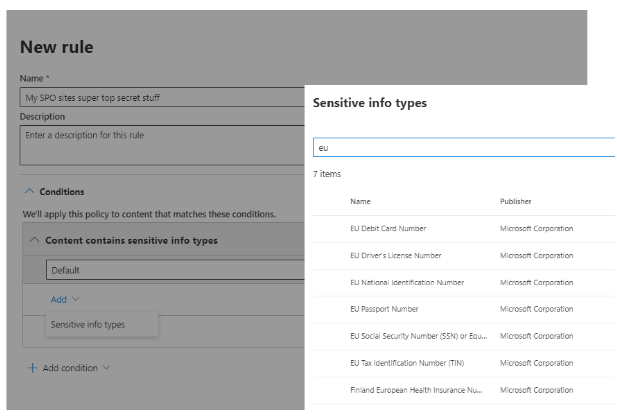 And with SPO you can choose example the European predefined rules for sensitive content.
