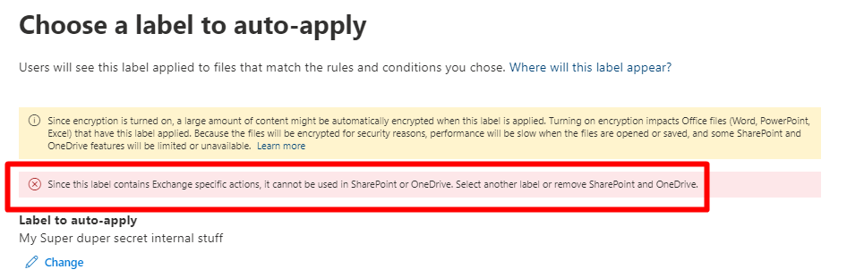 And wait a sec, you cannot apply the label to SPO sites when it contains EXO specific actions.