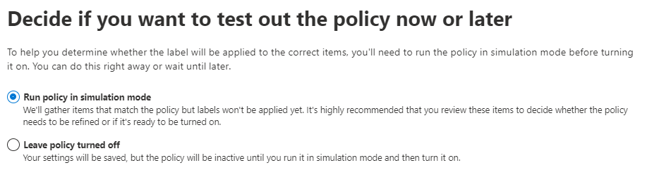 In simulation mode it will find the content that will be protected and when this crawl finishes you can enable the policy.