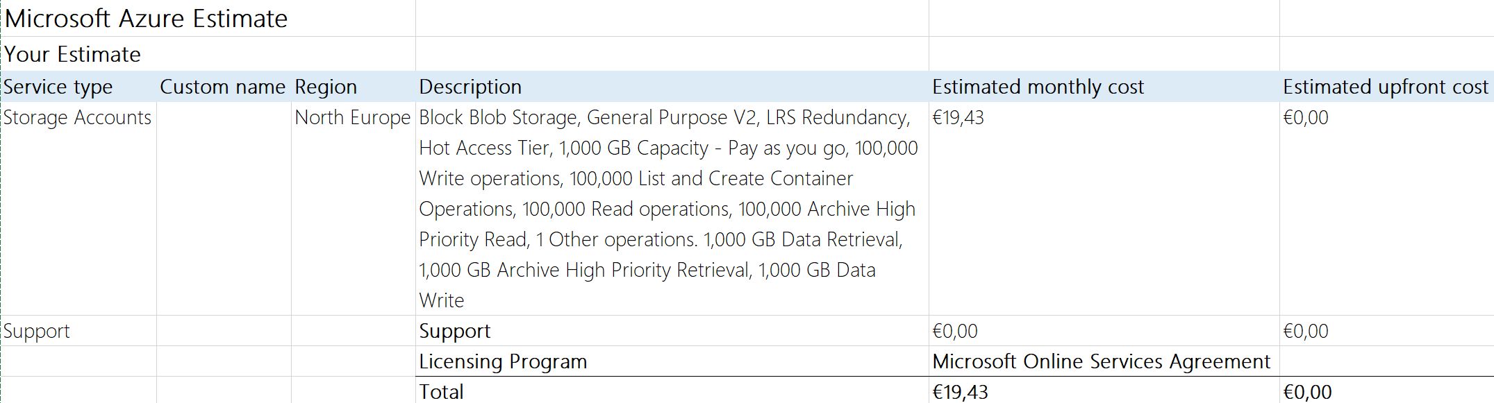and on top of that one the Storage (with the setup below) itself with Azure pricing calculator makes this much.