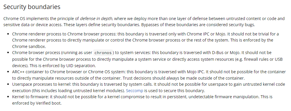 Google has a Chronium based security article in their Docs. And for one it states they have security boundaries from built-in Chrome and that it cannot interact with system services directly.