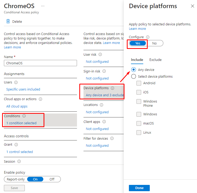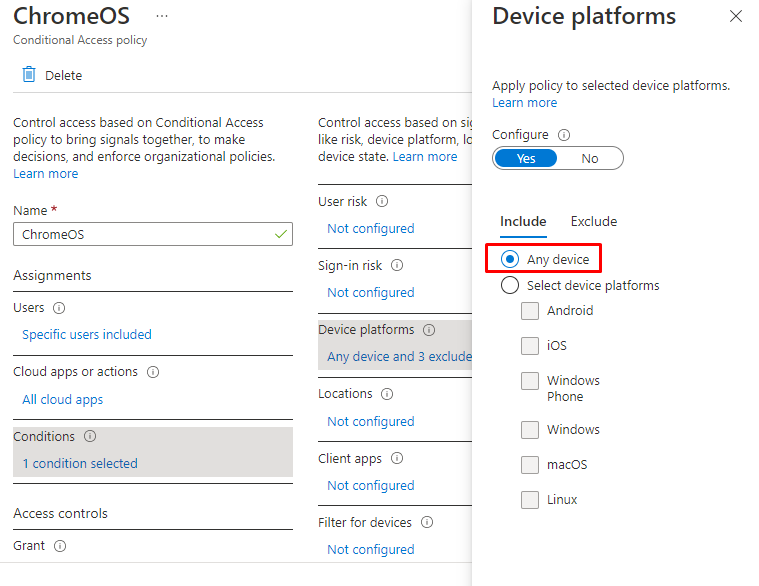 And we should assign it to to Any device as ChromeOS Flex isn't an Android.