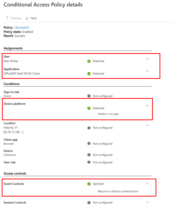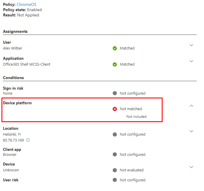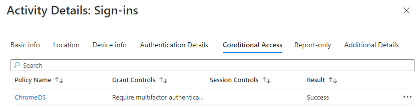 And once enforced, we will be asked for MFA on all the unsupported devices. And you will see it inside Azure sign-in logs as follows.