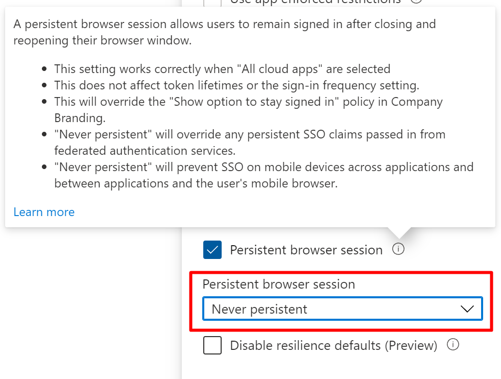 And there is also another approach for keeping sessions nice and short and that is with Conditional Access policies. And not even allowing the options for users to save their logins.