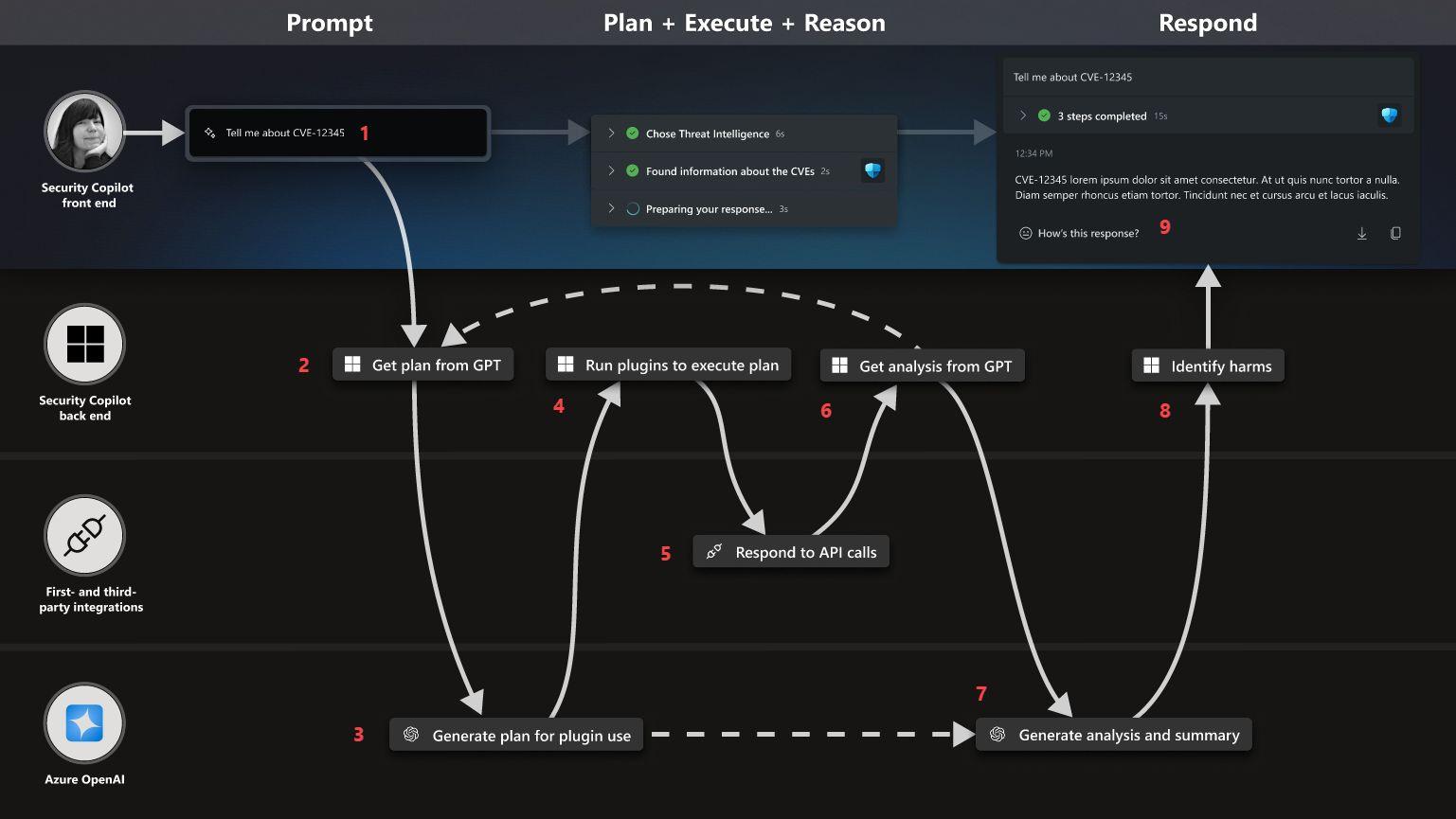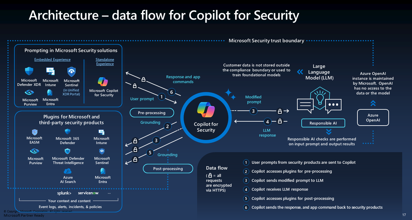 Describe how Microsoft Copilot for Security processes prompt requests - Training