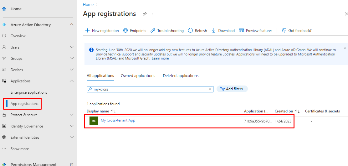 Let's jump to Entra and I will show you why I named it as application. Open App registrations under Entra and you will see an familiar App registration.