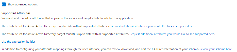And you have advanced options like request additional attributes, use expression builder and review your schema as JSON.