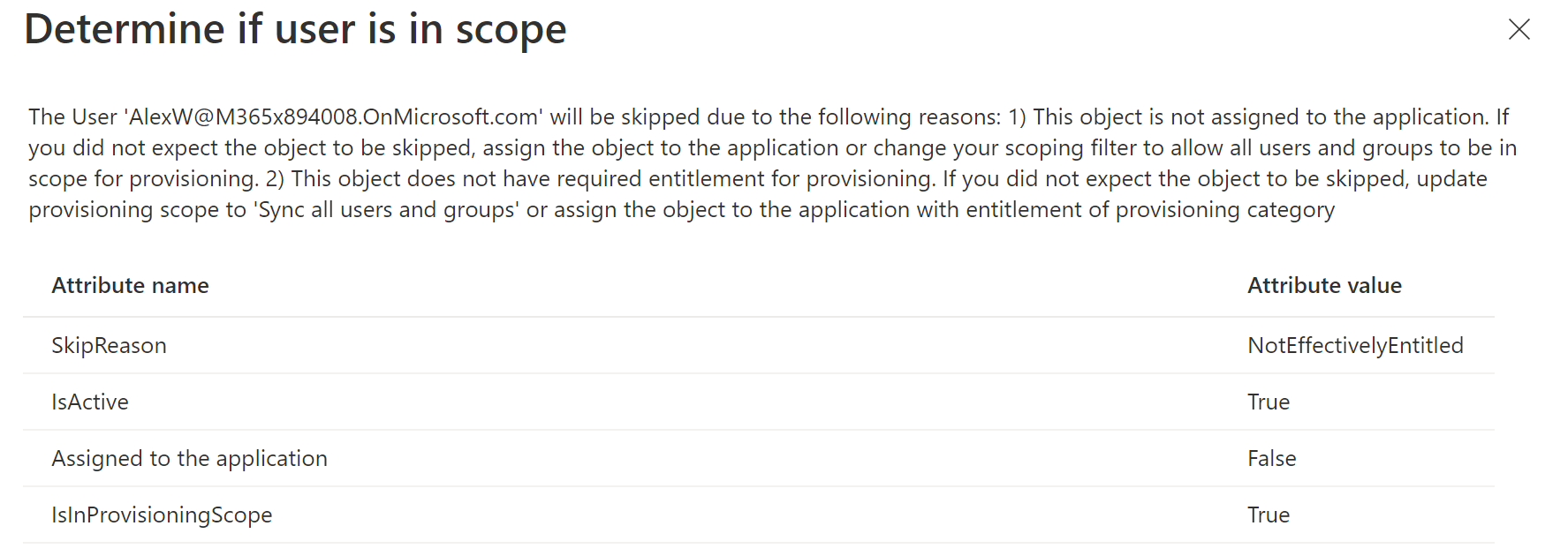 Once you select the users and run demand provisioning, you will see the following error if the user isn't attached to the app registration