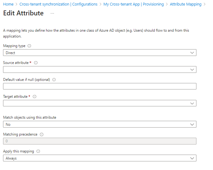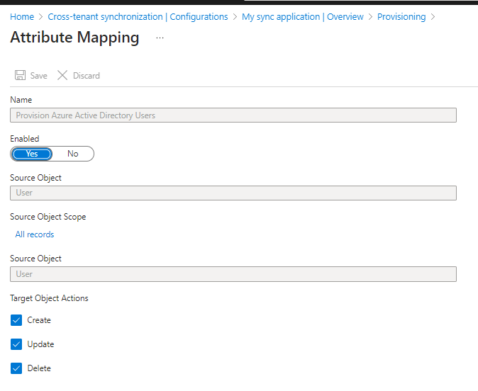 - Attribute mapping is configured in the source tenant.