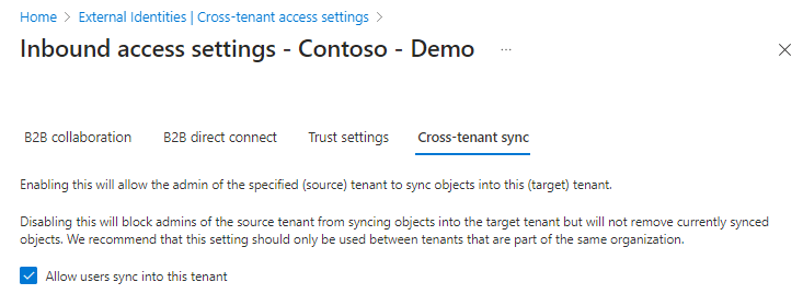 - Cross-tenant synchronization is not currently suitable for use across organizational boundaries.