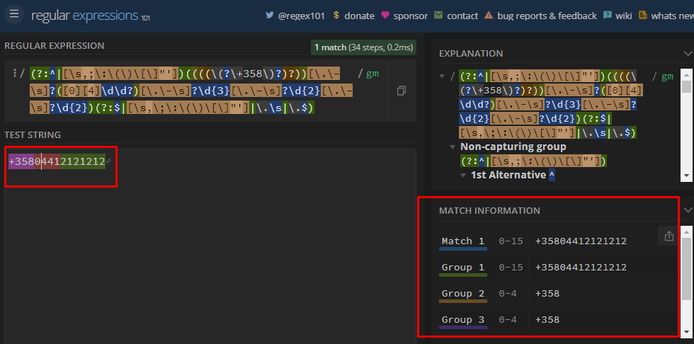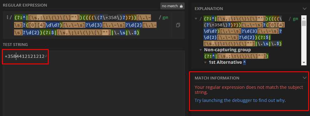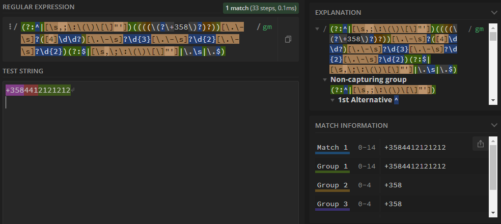 So it expression starts with +358 and then it presumes you have a zero but that's not actually right. If my number is 04412121212 it will be displayed outside as +3584412121212