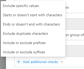 And additional checks from the content. To further refine the evaluation and detection of matching items, you can include additional checks that include or exclude specific text and/or patterns.
