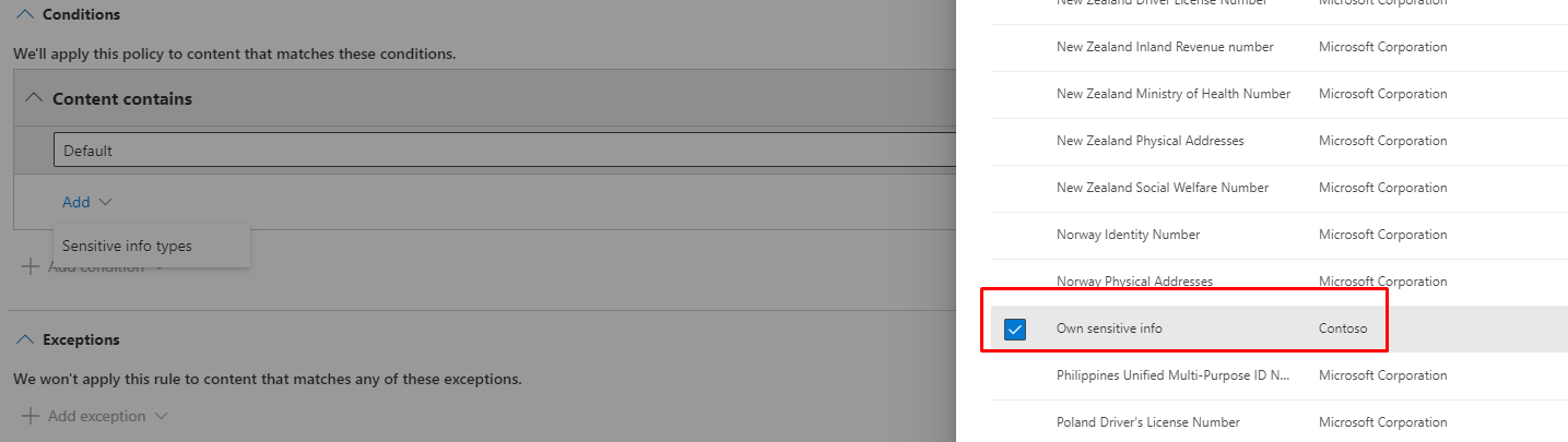 Sensitivity info types can be predefined or you can create your own from Data classification menu.