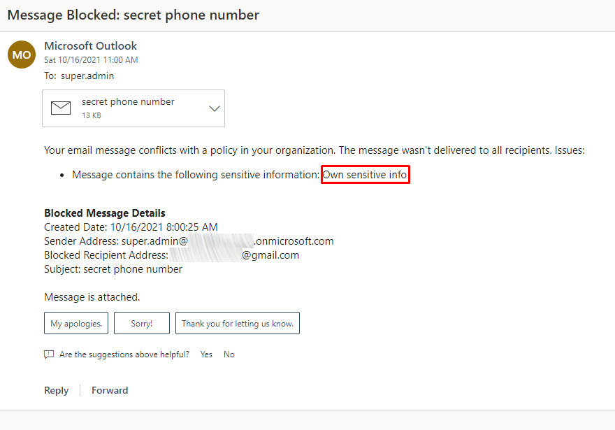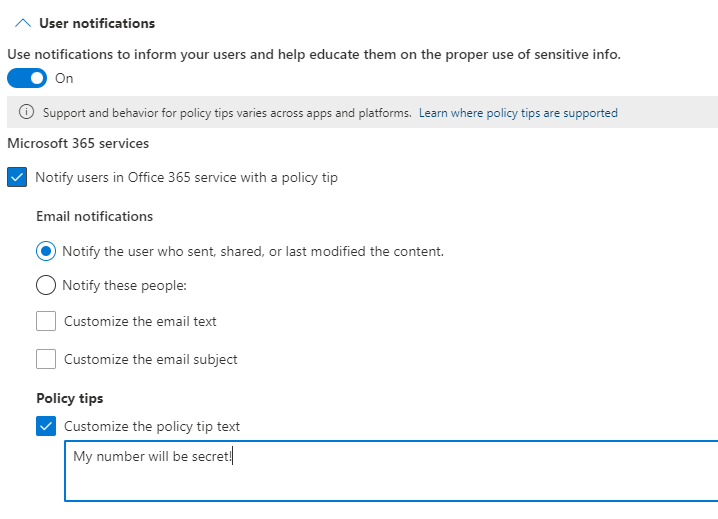 Data Loss Prevention policy tips reference - Microsoft 365 Compliance