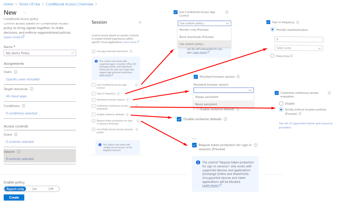 | Continuous Access Evaluation | Optionally customize continuous monitoring during sessions (advanced configuration). |