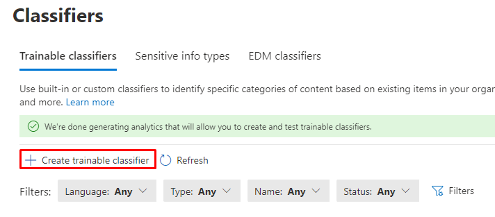 Section 1 – Implement information protection – Create and SITs and trainable classifiers