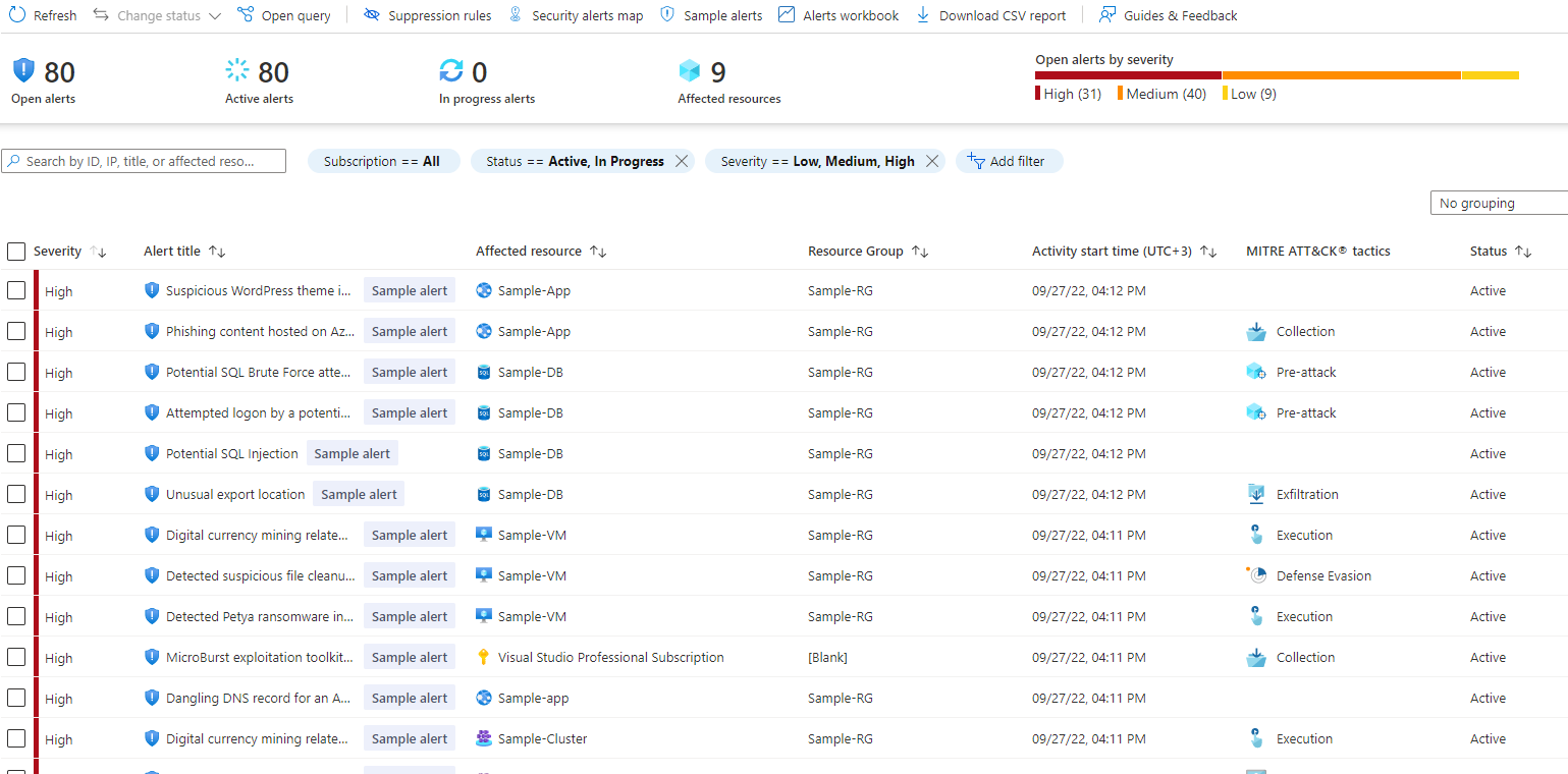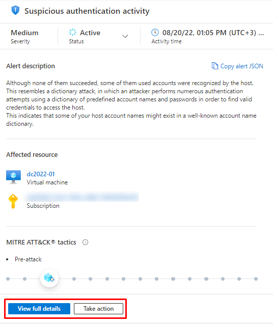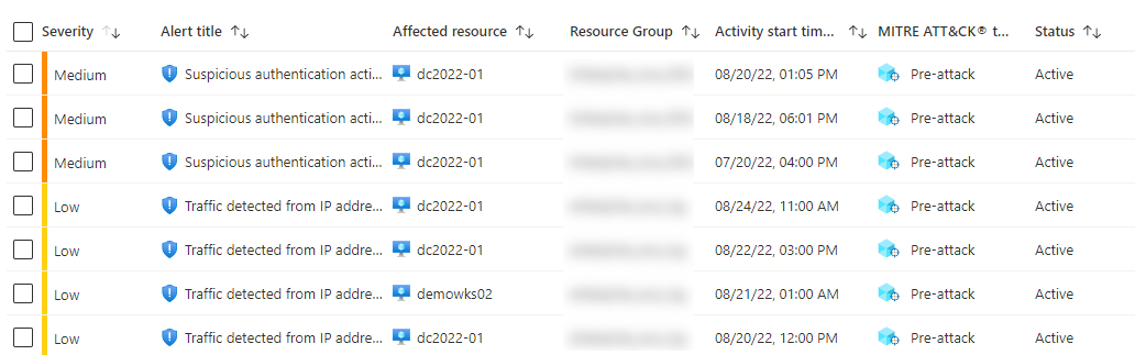 And below you have list of the affected resources with the severity Microsoft has chosen based on MITRE ATT&CK framework.