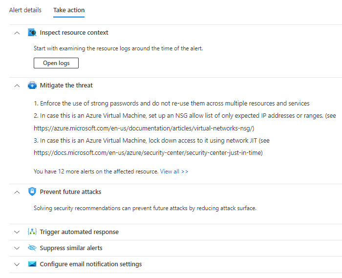 On take action page you can see the obvious actions, block RDP, use JIT and enable MFA. Which are the first ones to take.