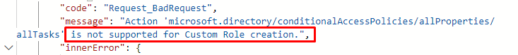 Note that if you are trying to create a roles with an permissions that isn't allowed, you will get this.