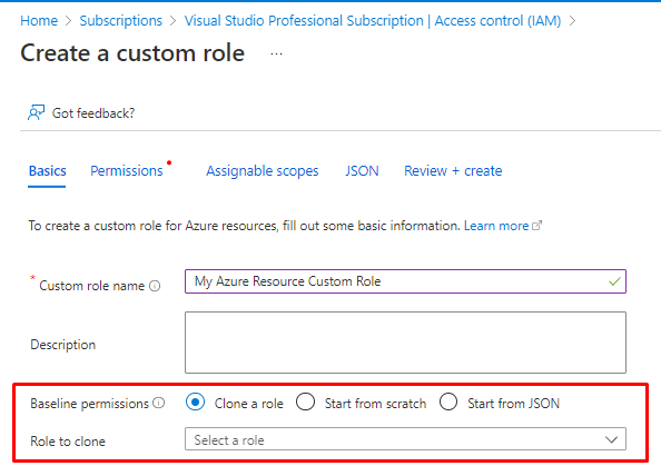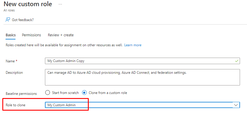 But for Azure resource roles the story is totally different. You can still use JSON files to create the roles but you have ability to Clone the existing Built-in roles.