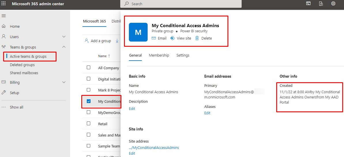 We chose to create an M365 group in the beginning and it will show inside Microsoft 365 Admin center also.