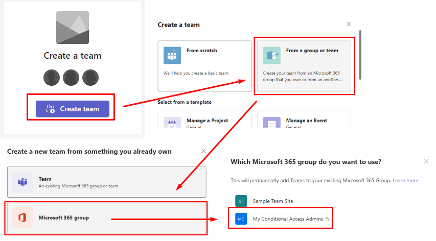 - The user creating the team must also have permissions to create teams in Microsoft Teams.