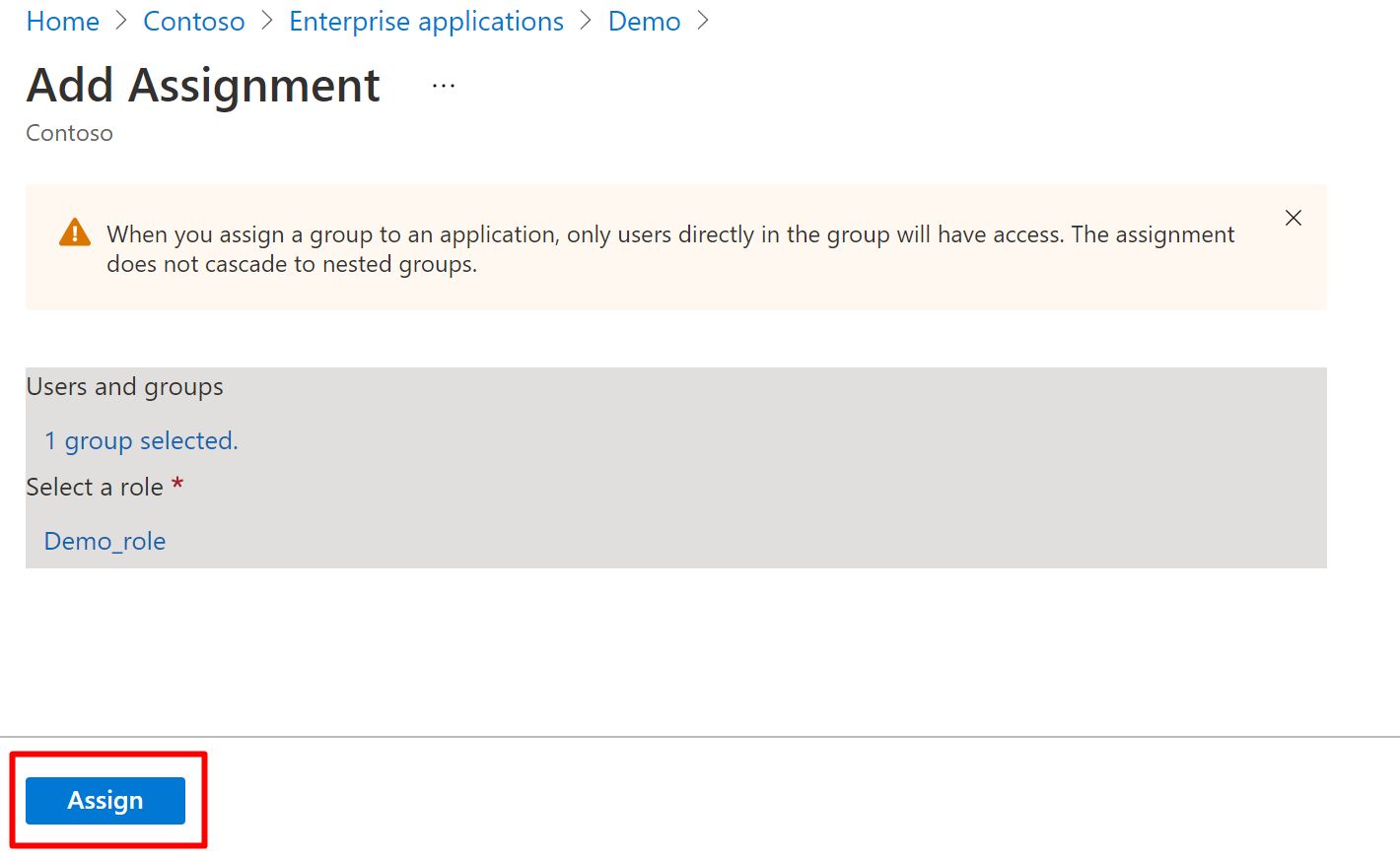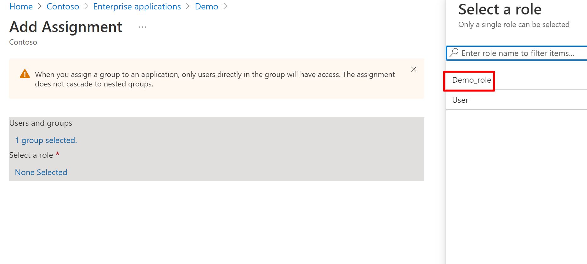 Choose Add user / Group and find the user or group that you need to assign the app role.