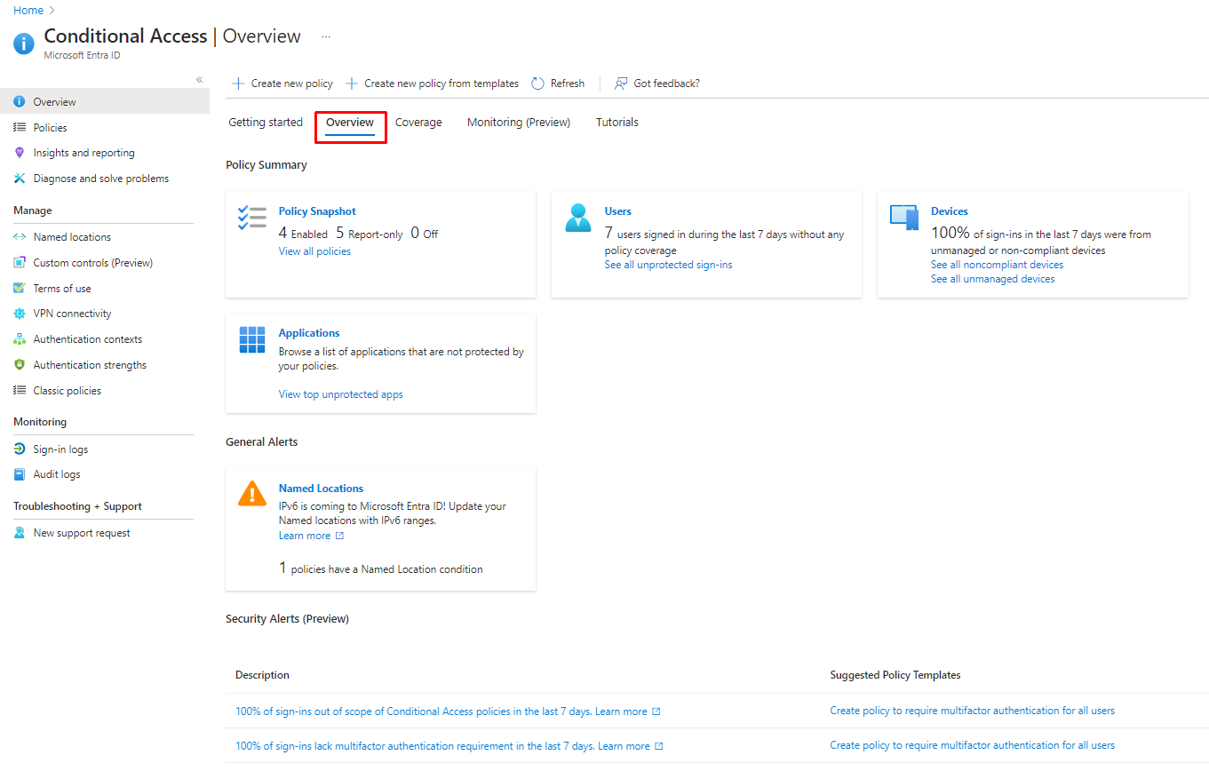 The dashboard that provides a thorough analysis of your conditional access situation. It gives you, the administrator, a clear summary of your rules, reveals any coverage gaps, and offers insightful data based on sign-in activity inside your tenant.