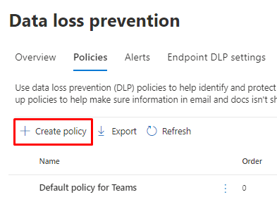 Open https://compliance.microsoft.com/datalossprevention?viewid=policies to start creating your own policy.