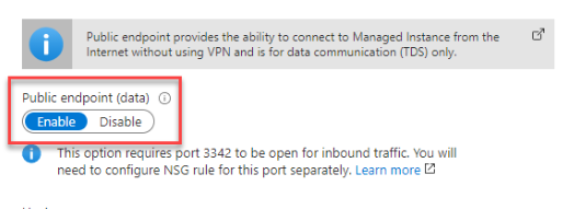 The first part of the process is to enable a Public Endpoint in the SQL Managed Instance.