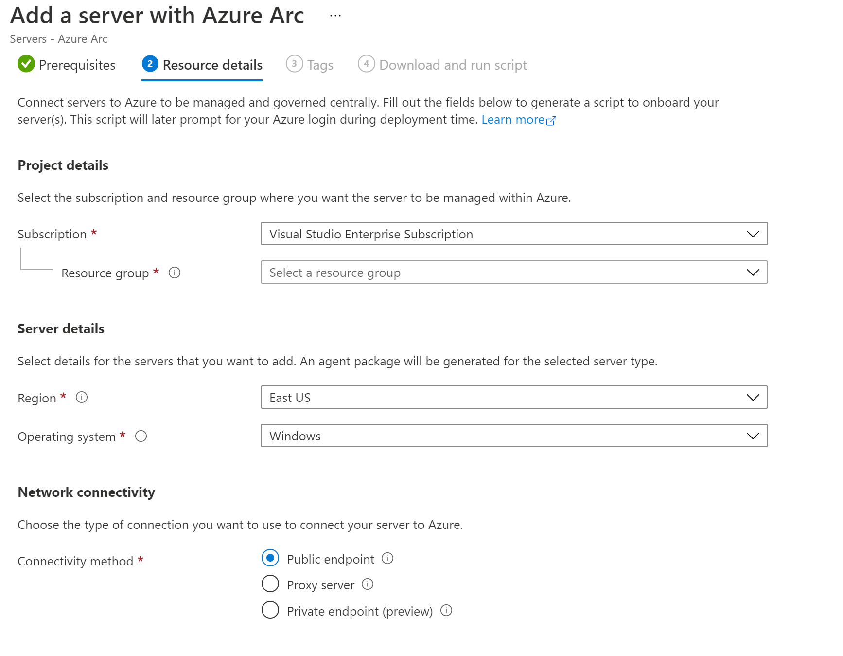 The script to automate the download, installation, and establish the connection with Azure Arc, is available from the Azure portal. To complete the process, do the following: