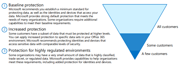 Basic protected organizations, organizations with higher policies for security, highly protected and regulated customers.
