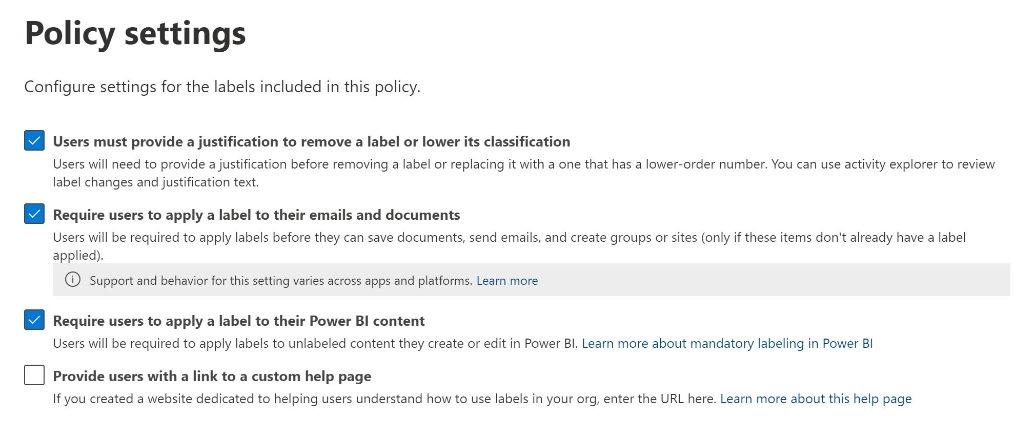 Then you can justify the users to lower or even remove the policy. And even protect Power BI content with the labels.