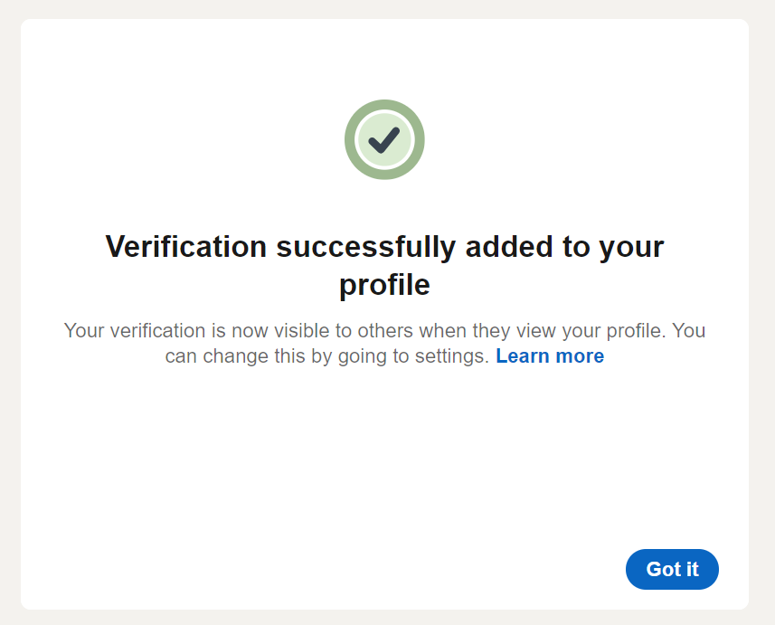 - If the name on your ID matches your LinkedIn profile, your verification will be visible.
