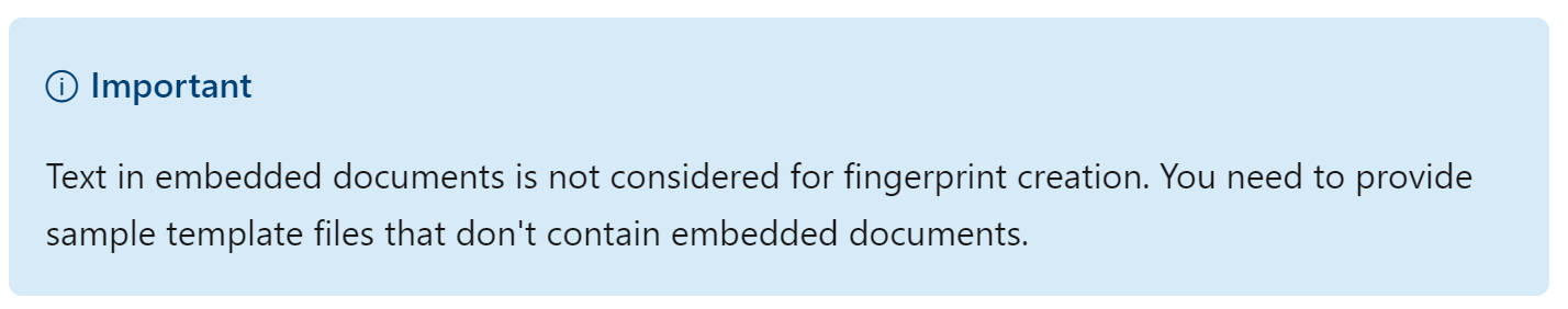 - Uploading forms or templates is highly effective in generating such document fingerprints because users start with the same initial set of words and then add their own content.