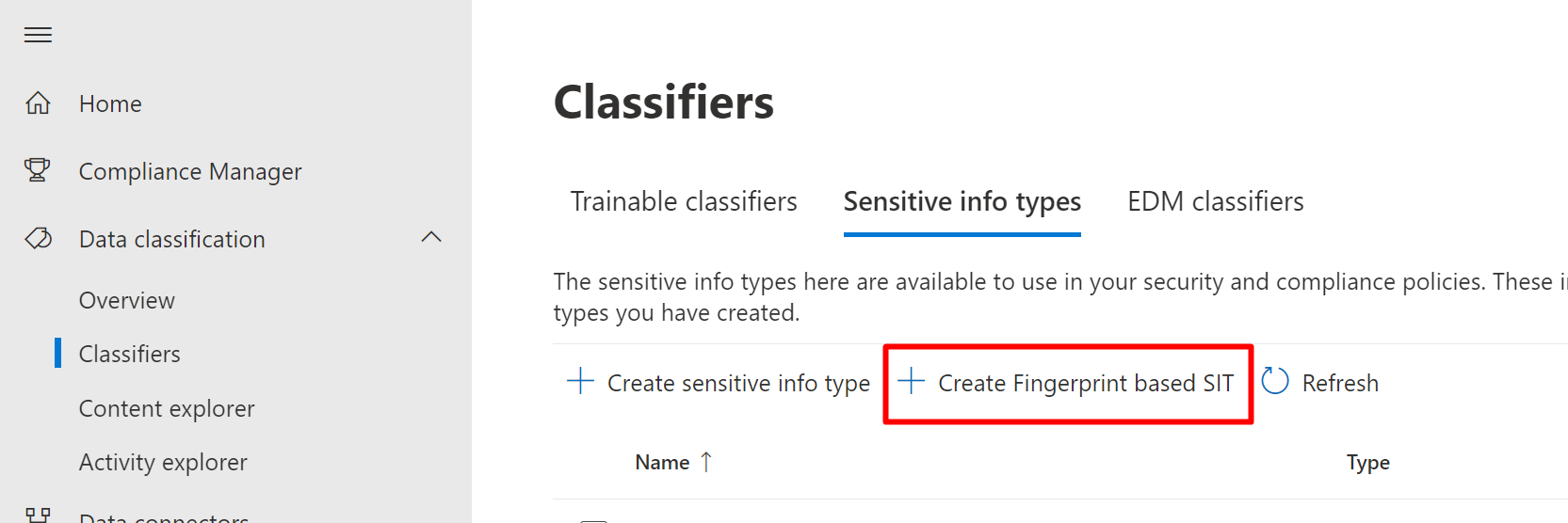 You can create Classifiers from https://compliance.microsoft.com/dataclassificationclassifiers?viewid=classifiers