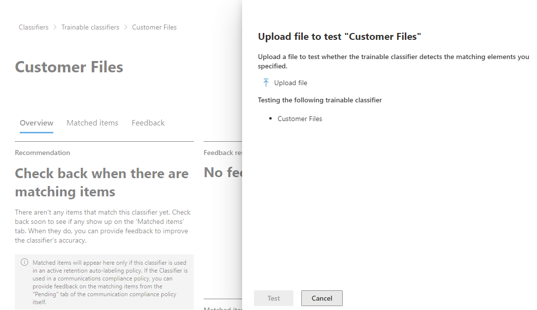 You have the option to check the count of matches detected by a trainable classifier in both Content Explorer and the Trainable Classifiers interface. Additionally, you can offer feedback on whether an item truly constitutes a match or not through the Match/Not a Match feedback mechanism and employ this feedback to fine-tune your classifiers.