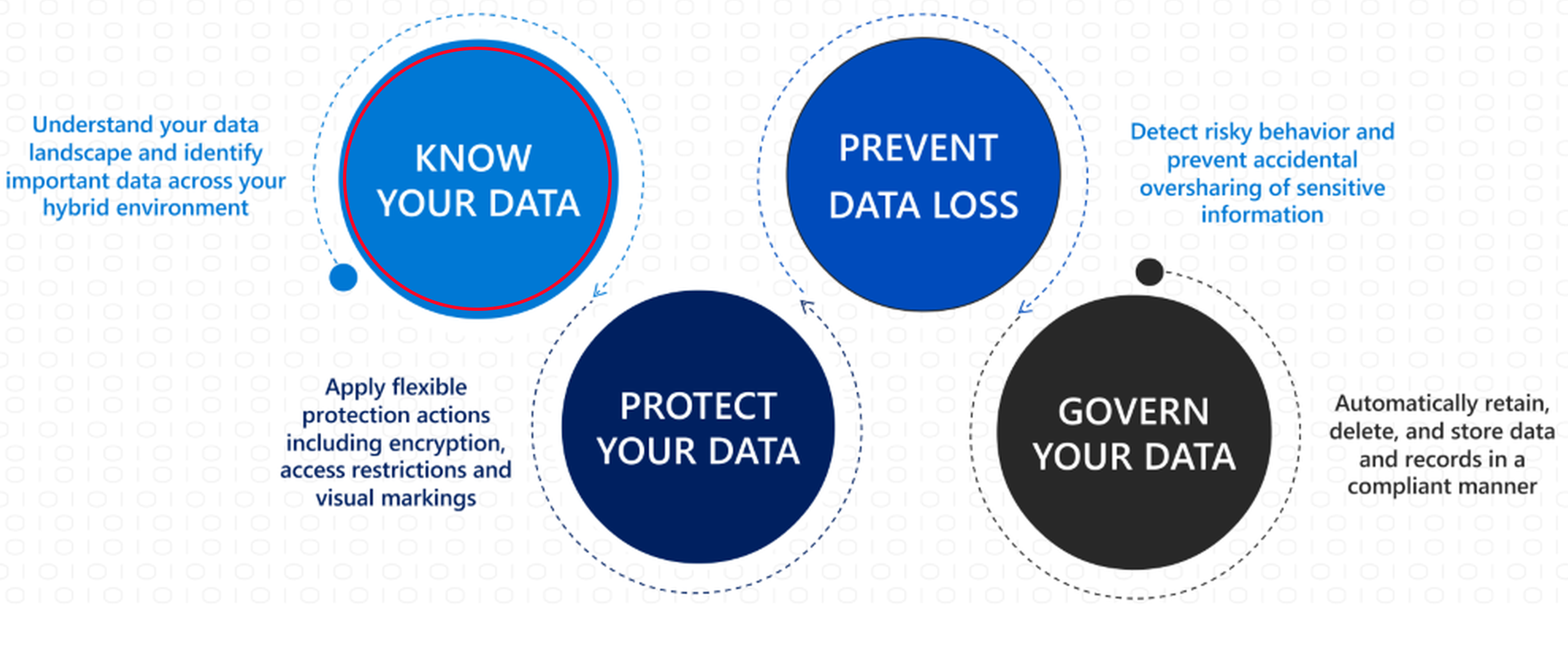 The first step in Information Protection is identifying and classifying sensitive items under your organization's control. Microsoft Purview offers three methods for this:
